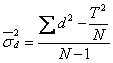 În exemplul ales adaugam în tabel o coloana d2, pe care însumând-o obtinem Σd2=27.
