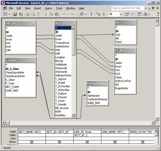 Interogarile SQL au fost gandite pornind de la nevoile programelor de analiza si au fost realizate pentru a crea o corespondenta intre valorile din baza de date si datele necesare in HDM4. S-a tinut seama de faptul ca in baza de date nu au fost incluse si nici nu s-a intentionat sa se colecteze toate tipurile de date recomandate in analiza. Ideea de baza a fost in permanenta nevoia minimizarii costurilor de colectare.