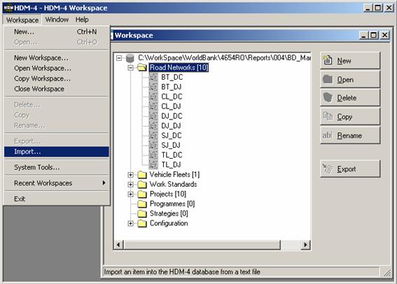 Trebuie exportate datele in fisiere de uz general si importate in HDM IV,