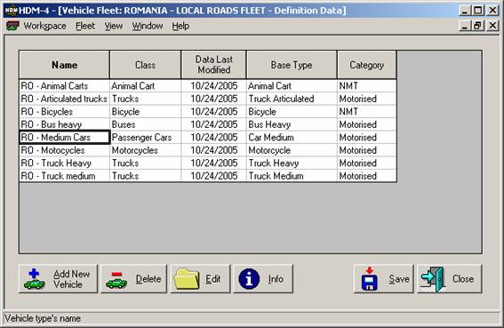 Fig. 6 Date privind caracteristicile vehiculelor introduse in HDM IV