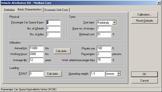 In prezentul studiu au fost utilizate caracteristicile vehiculelor corespunzatoare nivelului national. Acestea sunt aplicabile deoarece recensamantul circulatiei se face unitar utilizand aceleasi clase de vehicule pentru toate categoriile de drumuri.