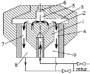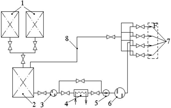 6 - baterie de filtre calde; 7 - pulverizatoare; 8 - tubulatura de retur;