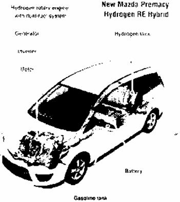 Mazda 5Hydrogen RE Hybrid reprezinta o abordare noua pentru motorul rotativ. Acest model beneficiaza de un motor rotativ cu alimentare combinata pe hidrogen si benzina, dispus transversal, ce dezvolta cu aproximativ 40% mai multa putere decât cel ce echipeaza modelul RX-8 Hydrogen RE, rezultând astfel o performanta mai buna la accelerare. Noul motor pe hidrogen a necesitat si dezvoltarea unui nou sistem hibrid care sa-i faciliteze functionarea. Motorul rotativ pe hidrogen conventional prezenta un cuplu mic si o eficienta scazuta la turatii mici. Noul sistem depasesete aceste neajunsuri si extindeautonomia pentru alimentarea cu hidogen la aproximativ 200 km, de doua ori mai buna decât pentru modelul RX-8.