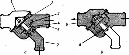 8 (fig. 8.6) cand apa motorului este sub 71°C, supapa mare 2, din corpul