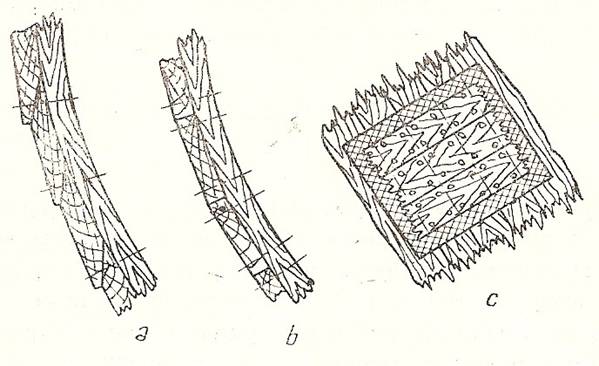 Bordajul acestora poate fi in constructie Klinker (fig. a de mai jos), plan (fig. b) si in diagonala (fig. c)