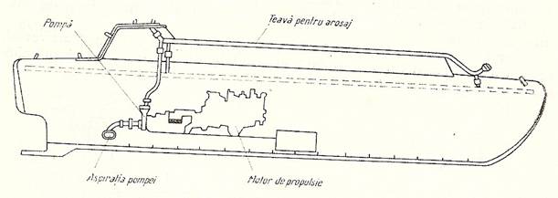 Stropirea operei moarte este deservita de o pompa actionata de motorul de propulsie sau actionata pneumatic (barca de salvare de poductie engleza Watercraft).
