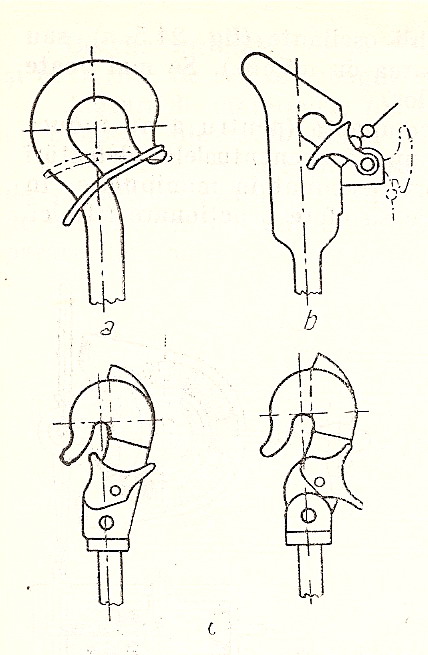 Din aceste motive barcile de salvare se doteaza cu cirlige patent de tip Angrove, Mc Kay si Robinson (figura de mai jos):