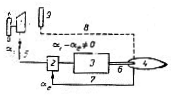 In fig.48 este reprezentata schema bloc a instalatiei de guvernare cu comanda in circuit inchis, formata din timona de comanda 1, elementul comparator 2, masina de carma 3, organul de executie (carma) 4, transmisia de comanda 5, transmisia de forta 6, legatura inversa (reactia) 7, transmisia de control 8 si axiometrul 9. Prin transmisia de comanda 5, care poate fi mecanica, hidraulica sau electrica, timonierul comanda unghiul de bandare a. Prin rotirea timonei la unghiul dorit, aceasta marime unghiulara de intrare aI este pastrata in forma ei initiala sau este transformata intr-o alta marime mecanica (de exemplu, deplasarea liniara), electrica (intensitate sau pensiune) sau hidraulica (presiune), cu care va opera elementul comparator 2. La acelasi element comparator este racordata si legatura inversa 7, care transmite informatia de pozitie a unghiului de bandare a carmei, care constituie marimea de iesire ae , pe care legatura inversa trebuie s-o furnizeze intr-o forma de energie de aceeasi natura (mecanica, electrica sau hidraulica) pentru a putea calcula diferenta aI ae . elementul comparator 2 permite transmiterea comenzii spre masina de carma 3 atat timp cat aI ae 0, anuland-o atunci cand s-a ajuns la aI ae=0. Carma se opreste la unghiul de bandare comandat aI , fara interventia supli-mentara a timonierului.