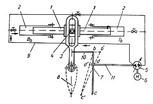 9- conducte hidrostatice; 10- bara legaturii inverse; 11- tija