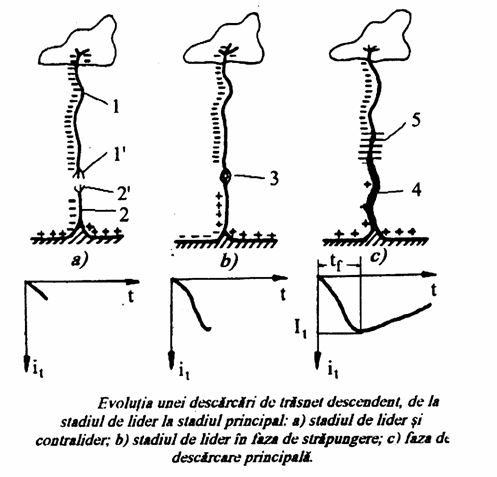 Evolutia unei descarcari de trasnet de la stadiu de leader descendent si pana la stadiul de descarcare principala este prezentata in fig. 20.3.