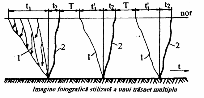 Deoarece in nor sunt mai multe concentrari ( acumulari ) de sarcini negative, dupa amorsarea descarcarii intre nor si sol, pe traiectoria astfel formata, are loc o succesiune de descarcari pana la neutralizarea totala a sarcinilor. Acest caracter multiplu al descarcarilor a fost confirmat si de aspectul fotografiilor descarcarilor. Aceste