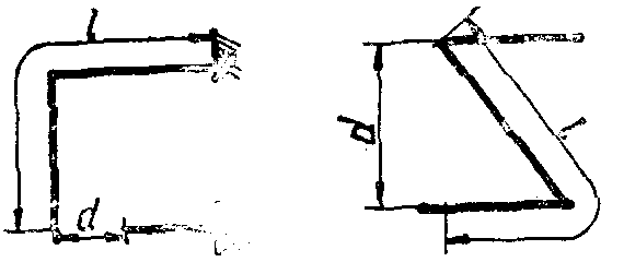 Datorita tensiunilor electromotoare induse de unda de curent de trasnet si a repartitiei potentialului in jurul unei prize de pamant, coborarile se executa dintr-o bucata, vertical si rectiliniu, evitandu-se buclele si schimbarile de directie. Daca buclele nu se pot evita, atunci acestea se executa ca in fig.20.12.