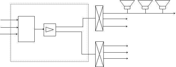 B3. INSTALATII DE RADIOAMPLIFICARE - realizeaza transmiterea programului radio sau a programului propriu statiei la distanta mare in diferite puncte ale cladirii. Elementele instalatiei sunt: