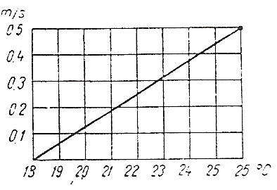Vara , pentru o sedere indelungata a omului intr-o incapere, diferenta dintre temperatura aerului introdus si cea a aerului interior nu trebuie sa depaseasca 5 pina la 8 º C, iar viteza aerului nu trebuie sa depaseasca valorile date de diagrama din figura de mai jos: