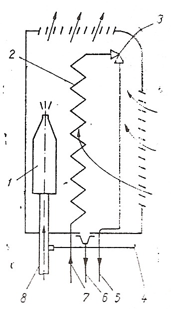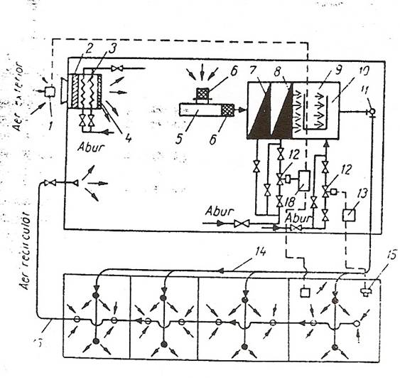 In figura de mai sus este reprezentata schema unei instalatii de incalzire cu aer cu un singur circuit: