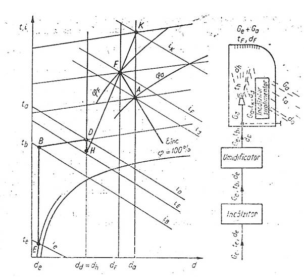 Folosirea schemei cu recirculare a aerului asigura un consum de caldura de 5 pana la 6 ori mai mic decat schema fara recirculare, pentru temperatura aerului exterior - 25 º C.