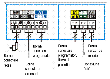 Senzorul de temperatura exterioara pentru regulatoarele electronice (de ex. DWT) pot fi conectate la terminalul de pe centrala AF, sau la terminalul de pe regulator.
