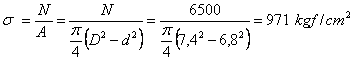 O teava de otel, de diametru exterior D = 74 mm, diametru interior d = 68 mm si lungime l = 8 cm, este īntinsa cu o forta N = 6500 kgf. Sa se afle efortul unitar si alungirea tevii neglijānd greutatea proprie.