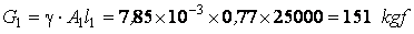 G = g · A·l = 7,85 x 10-3 x 1,40 x 100000 = 1100 kgf.