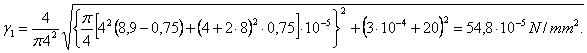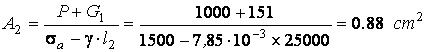G2 = g·A2 ·l2 = 7,85 x 10-3 x 0,88 x 25000 = 173 kgf