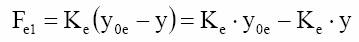 Pentru calculul rezultantei fortelor elastice (fig. A.13.1-2) se admite ca resoartele sunt simetrice īn pozitia neutra a sertarului. Īn cazul deplasarii acestuia cu distanta y, fortele elastice devin: