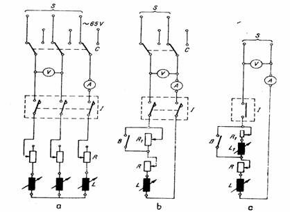 Fig. 11. Schema circuitului de incercare a rezistentei la uzura sub sarcina a unui intrerupator automat.