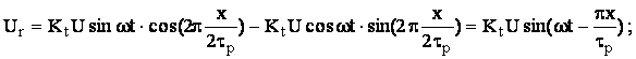 În acest caz cursorul fiind alimentat cu tensiunile U sin ωt, respectiv U cos ωt, se obtine tensiune de iesire (din rigla) :