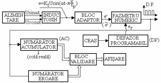Schema de principiu pentru prelucrarea semnalelor produse de inductosinul liniar, în cazul deplasarii pe o axa si oprire la cota prescrisa, este data în figura 4.20 :