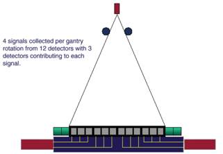 Sunt colectate doua, patru, opt, saisprezece, 32 sau 64 semnale/canale pe rotatie de cadru. Fiecare din cele 2 pâna la 64 semnale sunt colectate dintr-un detector individual sau o combinatie de detectori. Numarul detectorilor combinati pe semnal/canal influenteaza grosimea minima a partii.