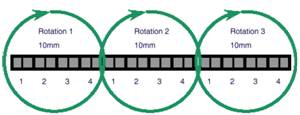 Aceste miscari sunt bazate pe potrivirea razelor unui fascicul cu miscarea mesei în mm pe rotatie.