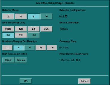 Variantele de reconstructie sunt rezultatul grosimii partilor si numarului de imagini, de exemplu selectând 32 imaginini la o grosime de 1,25 mm permite electii retro de 0,625 mm, 1,25 mm, 2,5 mm si 5 mm.