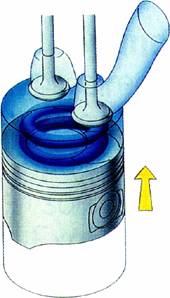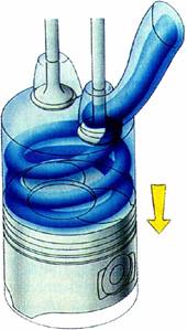 Carburantul patrunde în camera, fiind pulverizat prin injector. Fiecare particula de motorina intra în contact cu aerul supraîncalzit.