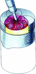 Motoarele cu injectie directa. Injectia este realizata direct în camera de ardere, care se gaseste de regula în piston. Se utilizeaza pentru aceste motoare injectoare cu gauri care necesita presiuni de injectie ridicate pentru pulverizarea carburantului. |