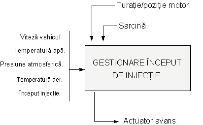 În functie de parametrii motor, calculatorul comanda actuatorul de avans conform unei cartografii memorate. El controleaza ca avansul comandat este chiar avansul real prin captorul de ridicare a acului injectorului. Sistemul este buclat si permite o corectie daca este necesar. Peste aceasta corectie care este limitata ca valoare unghiulara, calculatorul genereaza un mod degradat asupra gestionarii sistemului.