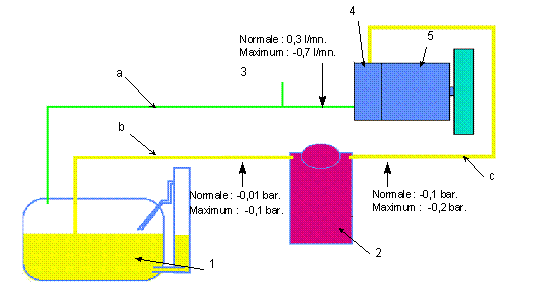 Precizia mare de realizare a elementelor componente ale sistemelor Diesel impune alimentarea cu motorina a motorului printr-un filtru care poate opri particule foarte fine de la 2 la 3 microni. Motorina este aspirata din rezervor printr-o pompa interna pompei de injectie. Circuitul functioneaza sub depresiune. Un defect de etanseitate genereaza o priza de aer si deci o dezamorsare a circuitului. |