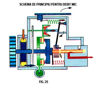 Când actuatorul nu este alimentat cu curent, debitul injectat prin pompa este nul, datorita actionarii arcurilor de deschidere care readuc culisa de debit în pozitia STOP.