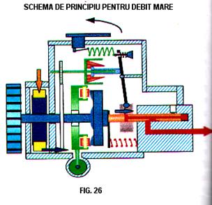 Pompa cu pompare axiala si regulator electronic respecta acelasi principiu de functionare ca si pompa cu regulator mecanic.