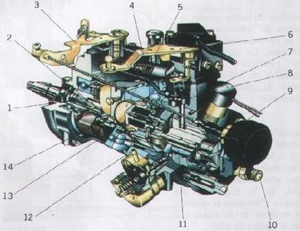 5 Retur de motorina. 6 Bobinaj de comanda. 7 Camera inferioara. 8 Camera superioara. |