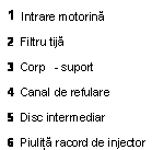 1 Gauri de injectie 2 Ac injector 3 Intrare înalta presiune. 4 Conector electric. |