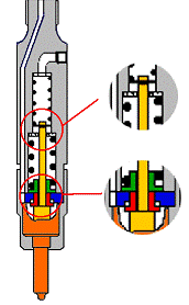 La acest moment echilibrul este restabilit între camera superioara si camera inferioara, acul injectorului se reînchide.