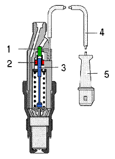 Anumite pompe pilotate electronic pentru injectia directa sau indirecta au nevoie de informatia de început de injectie. În acest caz, un port-injector se va echipa cu o bobina si un miez mobil. Injectorul instrumentat permite calculatorului de injectie sa determine avansul real prin compararea semnalului PMS motor si a semnalului de ridicare a acului. Acest captor este de tip inductiv si este integrat în injector. În aplicatia urmatoare, captorul poate fi alimentat sau nu. Ax de reglaj. Bobina. Tija-împingatoare. Cablu. Conector. |