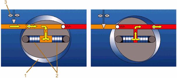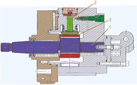1 Came rotative. 2 Element de pompaj cu pistoane radiale. 3 Electrovana.
