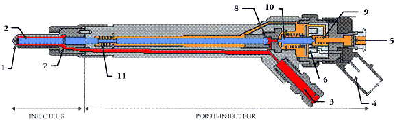 Injectorul este elementul major al sistemului Diesel. Calitatea injectiei si deci calitatea arderii sunt direct legate de caracteristicle si reglajele lui. Acesta participa la adaptarea ratei de introducere (cât se injecteaza în cât timp). |