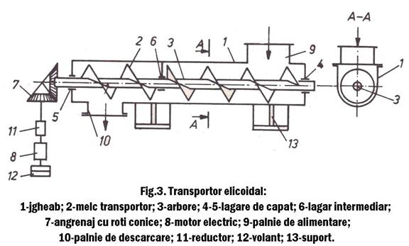 Este format dintr-o carcasa inchisa cu sectiunea transversala in forma de U, in care un melc 2 se roteste cu o turatie mica (fig.3).