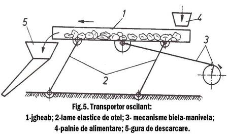 Se compune dintr-un jgheab 7 (fig.5), sustinut de lamelele elastice 2 inclinate in sens contrar miscarii materialului in jgheab. Miscarea rectilinie alternativa este imprimata jgheabului de mecanismul biela manivela (sau excentric). Alimentarea materialului se face prin palnia de alimentare evacuarea facandu-se prin gura de descarcare