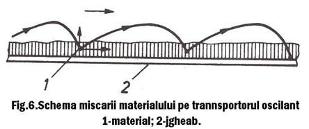 La miscarea jgheabului inainte, materialul din jgheab se deplaseaza o data cu acesta avand o viteza mai mica, in timp ce, la cursa de intoarcere, jgheabul deplasandu-se cu viteza mare, materialul nu mai poate fi antrenat si continua sa se deplaseze inainte sub actiunea inertiei.