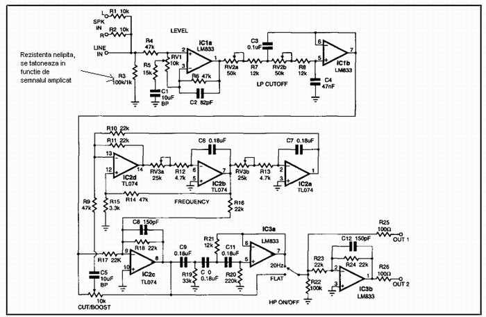 Legati iesirea care va convine cel mai mult in privinta sunetului, unii prefera iesirea normala iar altii cea inversata. Nu uitati ca trebuie legata una din iesiri si GND-ul. Aceasta iesire merge la amplificatorul dvs de putere.