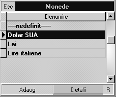 afla detalii despre moneda selectat [i eventual modifica datele introduse (dac\ tasta]i <Alt + D> sau selecta]i butonul "Detalii" cu mouse-ul);