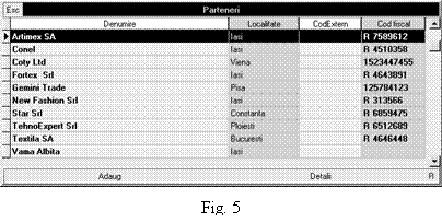 afla detalii despre partenerul selectat [i eventual modifica datele introduse (dac\ tasta]i <Alt + D> sau selecta]i butonul "Detalii" cu mouse-ul).