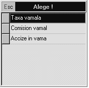 selecta]i butonul pentru a putea alege tipul de tax\ `nregistrat\ `n vam\ cu combina]ia de taste <Alt + 5>. Se va afi[a fereastra din figura 7.
